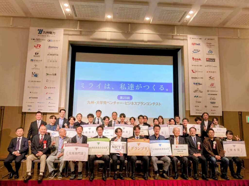 第25回九州・大学発ベンチャー・ビジネスプランコンテストの最終審査が福岡市にある「ももち浜SRPホール」で開催され、1次選考、2次選考を通過した10組が登壇しました。